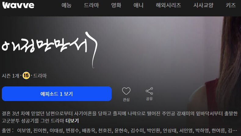 웨이브(WAVVE) 앱에서 애정만만세 다시보기